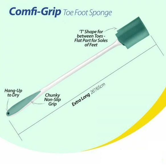 Our Toe-Foot Long Handled Sponge reduces bending, twisting or staining to reach - not everyone can touch their toes! Looking after your feet is important, especially if you have diabetes. If you are recovering from surgery or a sports injury, or have reduced joint mobility, you will also benefit from our toe washer and other washing aids. This specially designed foot brush is ideal if washing between your toes is a problem. Wash the top and soles of your feet in the shower or bath using the contoured base of the foot sponge.Then using the tapered toe washing sponge, easily clean in between your toes without having to stretch forward. The long handle eliminates the need to bend; the sponge has been shaped to get where others just cannot. The new supportive grip allows for comfort and ease. Suitable for men and women of every skin type including sensitive skin, dry skin and oily skin. Long handled sponges help remove dead skin and toxins and stimulate circulation.