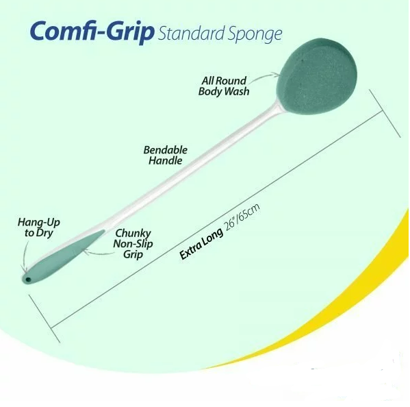 The Comfi-Grip Long Handled Deluxe Sponge can help you wash and scrub all over your body, especially those hard to reach areas including your back, legs and feet, without twisting, turning or bending. Bad back, stiff joints or a mum to be, if you want a good scrub, but just can’t reach, this is for you. The long handle eliminates the need to bend; the sponge has been shaped to get difficult to reach areas where others just cannot. The new supportive grip allows for comfort and ease.Suitable for men and women of every skin type including sensitive skin, dry skin and oily skin. Long handled sponges help remove dead skin and toxins and stimulate circulation.Features