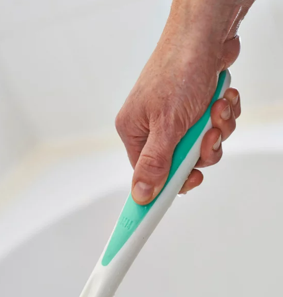 With a rubberised chunky handle, the long handled bathroom sponge is easy to grip even with wet hands