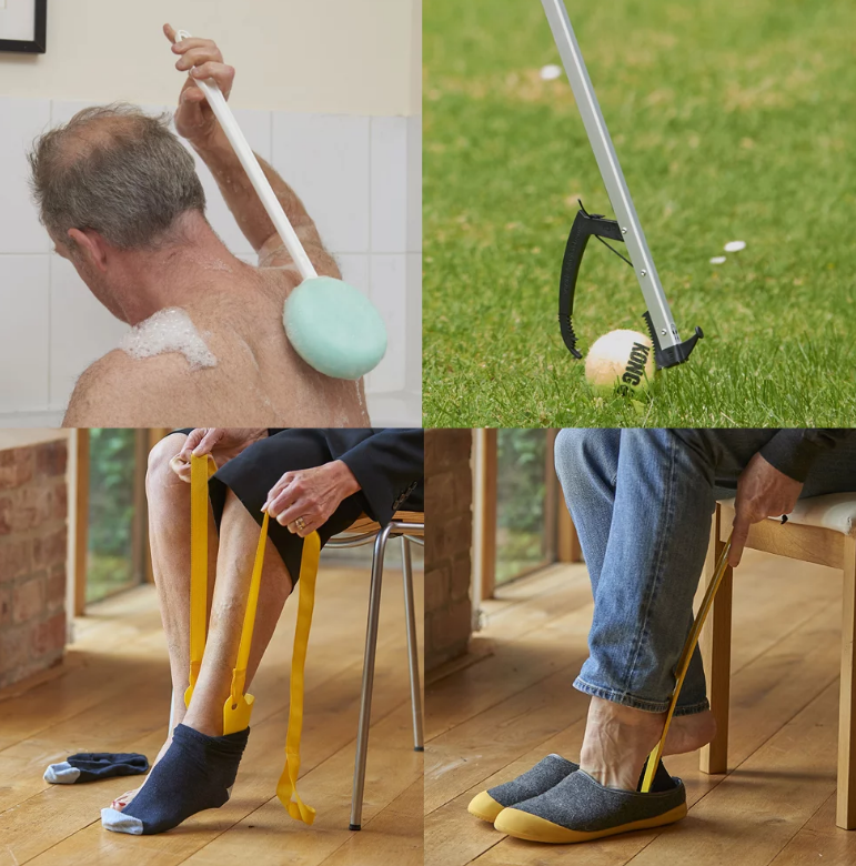 Our Essential kit will help you to reach high or low, get your socks and shoes on, and wash yourself with dignity. All while reducing the amount you will need to bend. Perfect for use longer term or as a gift for that person who has everything.