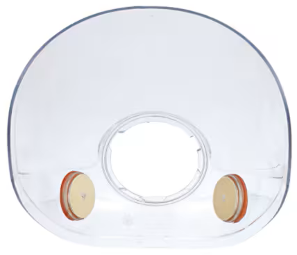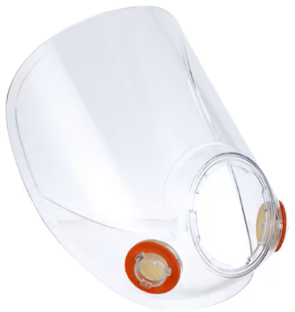A hard coated polycarbonate lens with installed bayonet attachment inhalation port fittings