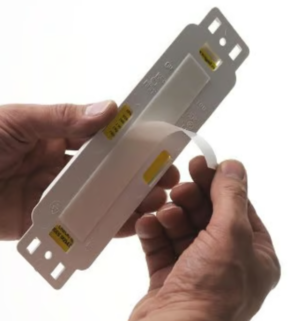 Maximum strength double-sided adhesive strip to attach to visual tagging systems