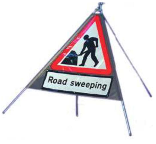 Roll-up Traffic Signs - Road Sweeping LARGE - Class 1 Ref BSEN 1899-1 2001 - 750mm Tri. - Reflective - Reinforced PVC - [QZ-7001.750.EF-V.750.RSWE]