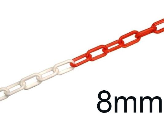 Red/White 8MM Thick Chain - 25m Long - For Post and Chain System - Simply Clips onto Post - No Fixing Required