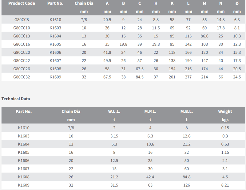 Marked with Manufacturers Identification - Tested and Certified - Size Chart Below