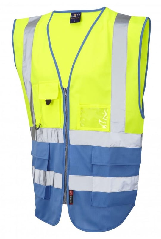 Hi-Vis Yellow/Deep Sky Blue Superior Waistcoat - Generous Size - LE-W11-Y/DS