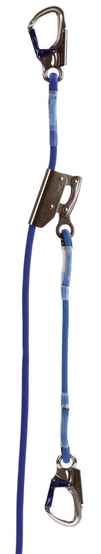 With a 12mm diameter kernmantle rope; a small aluminium double action hook at the anchorage end and a stainless steel rope adjuster, the working line has both flexibility and strength. Manually pressing the rope adjuster allows it to be moved along the rope to the required work position; this pressure can be released at any time to allow the adjuster to automatically grip the rope.