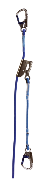 With a 12mm diameter kernmantle rope; a small aluminium double action hook at the anchorage end and a stainless steel rope adjuster, the working line has both flexibility and strength. Manually pressing the rope adjuster allows it to be moved along the rope to the required work position; this pressure can be released at any time to allow the adjuster to automatically grip the rope.