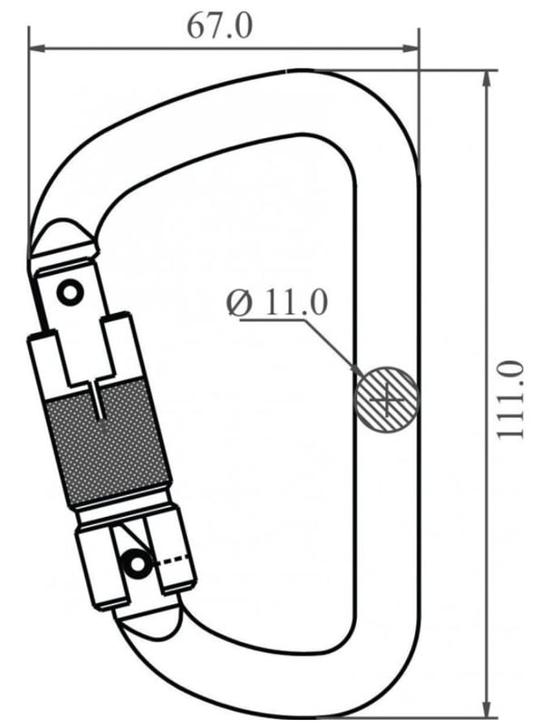 Breaking Strength 25kN - Gate Opening 23mm - Conforms to EN362 : 2004 Class B and ANSI Z 359.1 Class B