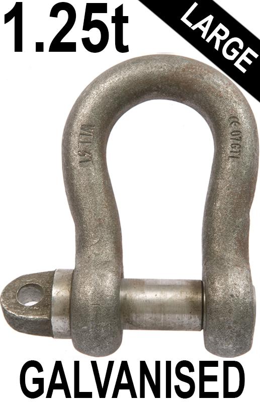 1.25t WLL Galvanised Large Bow Shackle c/w Type A Screw Collar Pin - 5 ...