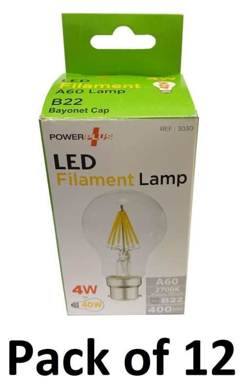Power Plus - 4W - B22 Energy Saving A60 LED Filament Bulb - 400 Lumens ...
