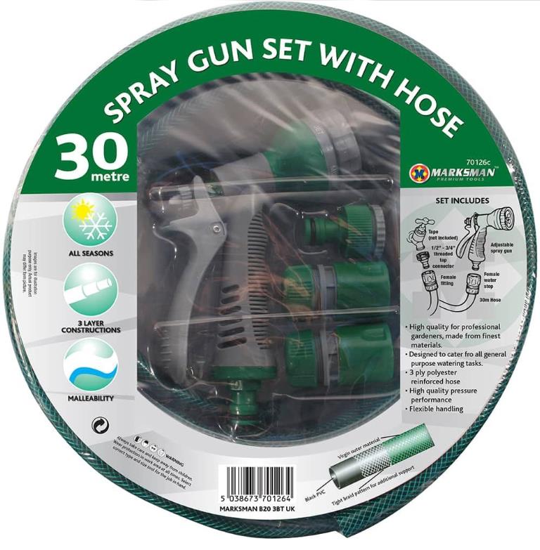 Marksman - 30 Metre 3 Ply Polyester Hose and Spray Nozzle Set - [PD-70 ...