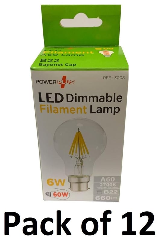 Power Plus - 6W - B22 Energy Saving A60 LED Filament Bulb - 660 Lumens ...