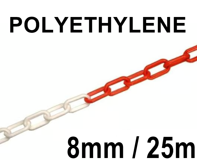 JSP - Red/White 8MM Thick Chain - 25m Long - For Post and Chain System ...