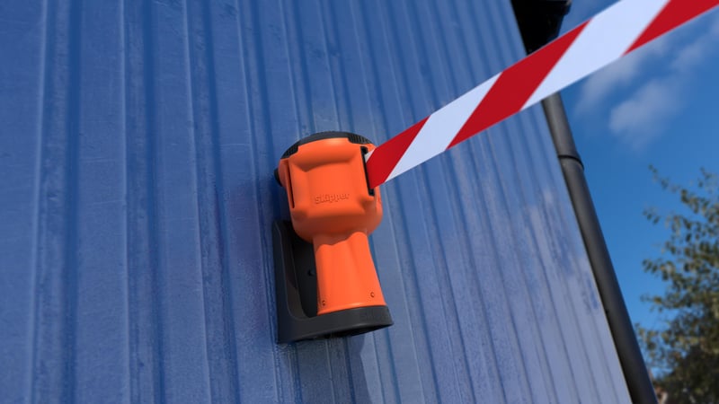| The Skipper wall support brackets hold the Skipper unit in place without the need for a cone or post. Unlike the magnetic version, the wall support brackets are intended for permanent/semi-permanent fixture.Simply screw the bracket into the desired position, then click the Skipper unit into place on the bracket (use the orange locking clip to locate into the four corresponding holes on the Skipper). You can then pull the tape out as usual. |