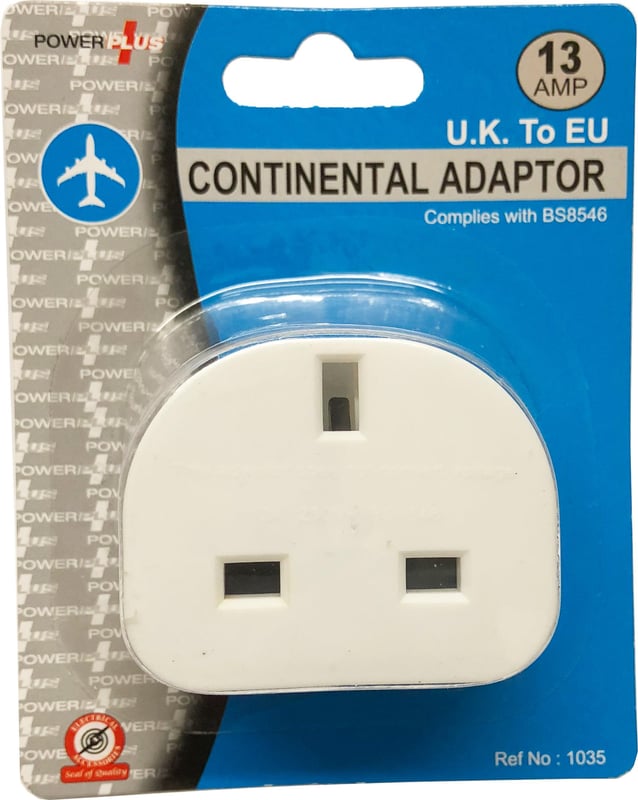 UK 3 Pin to Continental 2 Pin Adaptor - For Use in Europe and Many More Countries - 10A - Conforms to BS5733