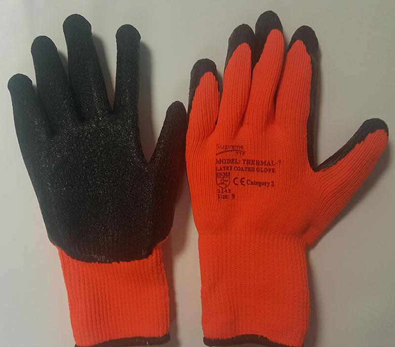 THERMAL 7 is a 7 gauge brushed terry knit acrylic gloves with crinkle latex coating on palm and thumb.Features:
