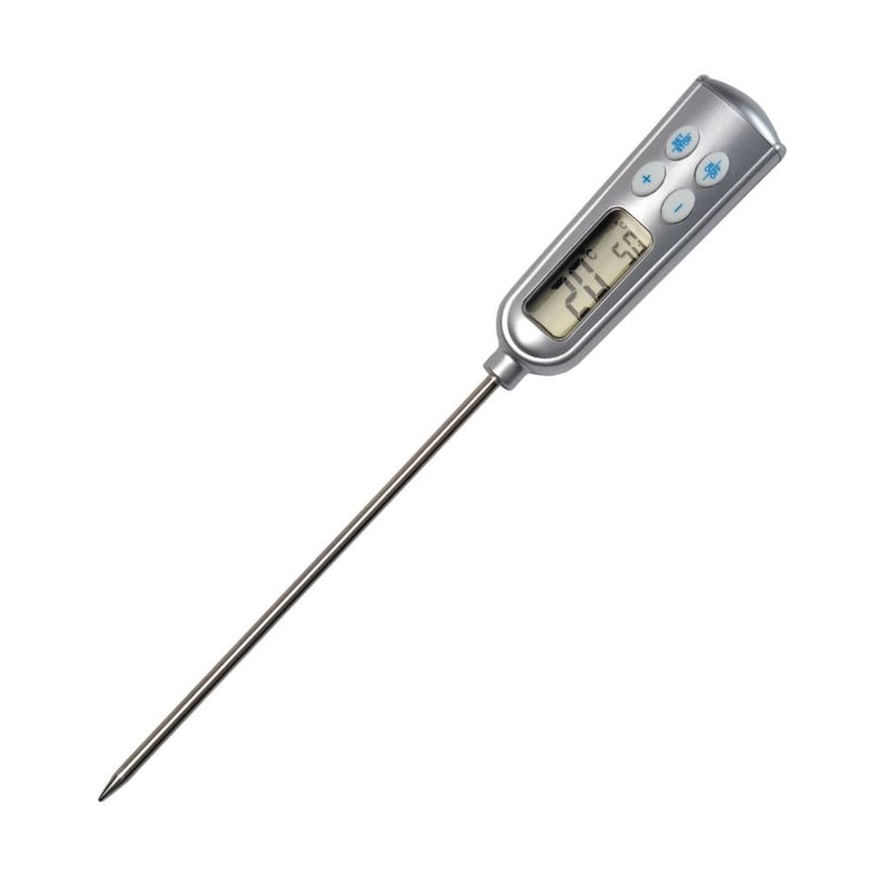 This low cost, easy-to-use splash-proof thermometer with alarm and 145mm pointed tip penetration probe is ideal for liquid and semi-solid sampling.