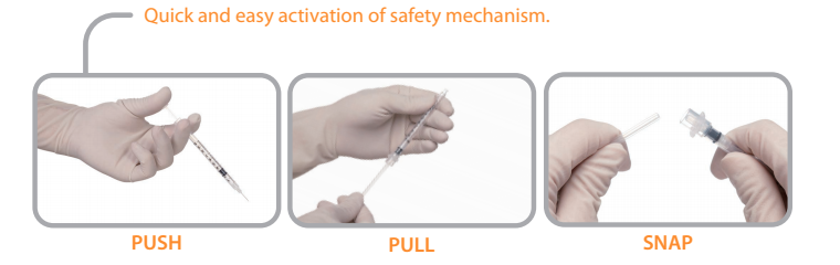 Please note that fingers must remain behind the needle during activation of safety mechanism. |