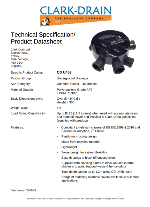 450 DIA - 5 Inlet PPIC Base Stepped Invert - Used For Underground Drainage - CD-CDU453 - (DISC-W)