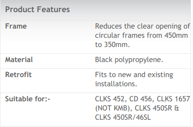 Black Polypropylene - Grade AP9 - Reduces the Clear Opening of Circular Frames from 450mm to 350mm - Special Order