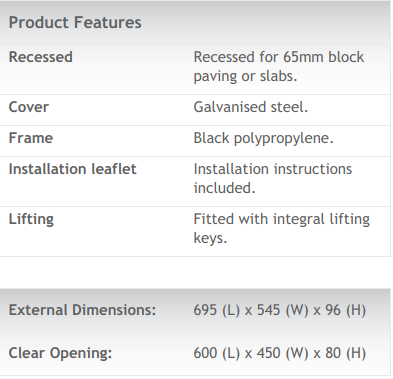 Steel Manhole Cover - Recessed - External Dimensions- 695 (L) x 545 (W) x 96 (D) - Special Order