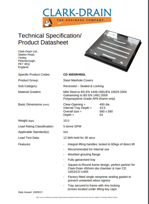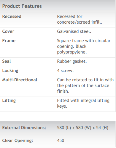 Recessed Cover and Frame - Square Frame with Circular Opening - Pedestrian Areas - 450 Diameter - CD-CD450SR/46SL - (HP)