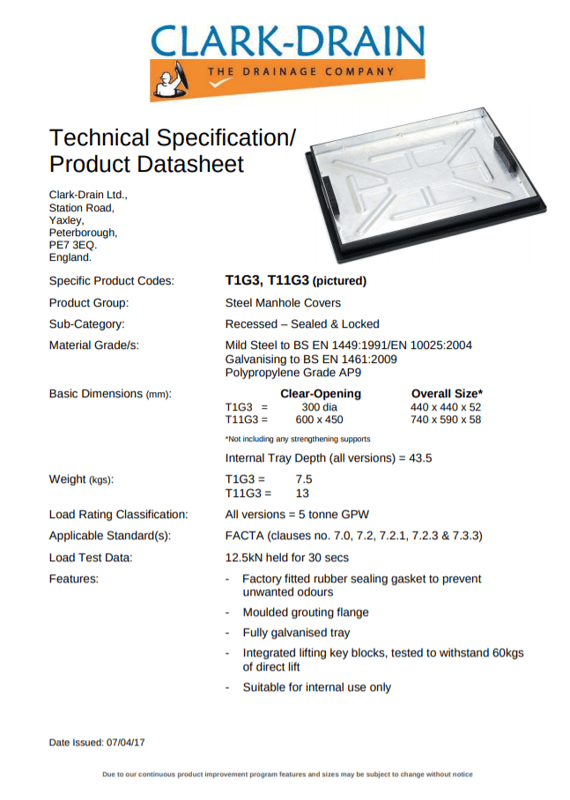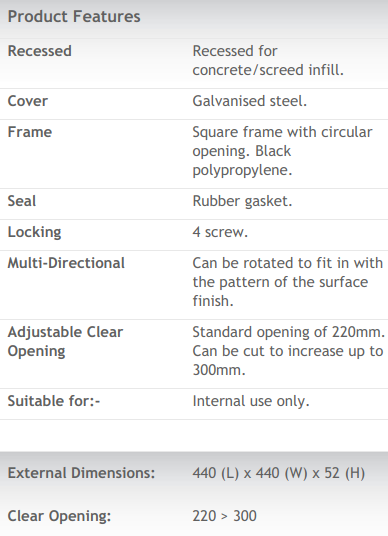 Recessed Cover and Frame - Square Frame with Circular Opening - Internal Pedestrian Areas - 220 - 300 Diameter - CD-T1G3 - (PS)