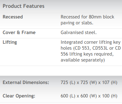 *Please note that all our Recessed Covers and Frames are brand new. As an industrial product designed for use on a floor and on the ground, they are not packaged the product may have some scuffs, marks or can collect dust.