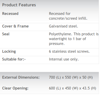 Galvanised Steel - Recessed - External Dimensions- 700 (L) x 550 (W) x 50 (D) - Special Order
