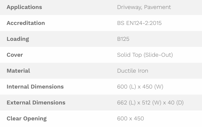 Cover and Frame Solid Top - Ductile Iron - Finish - Black Bitumen Coating - 662 (L) x 512 (W) x 40 (D) - Special Order