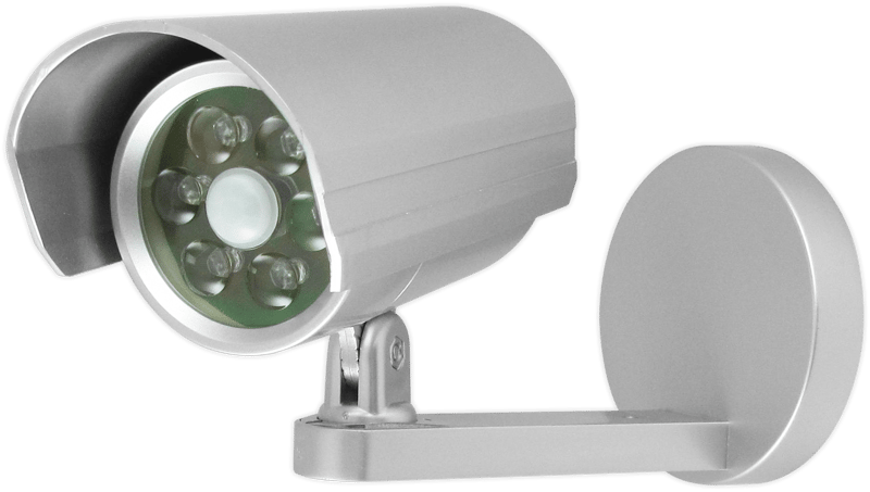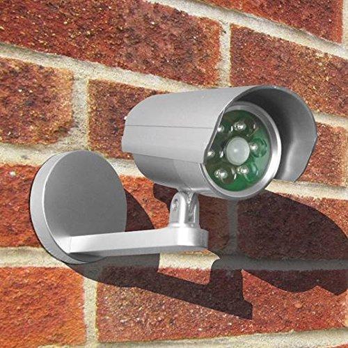 This particular Dummy/Fake CCTV Camera is equipped with 6 long life built in LED's and a PIR sensor. The light is designed to automatically turn on when movement is detected up to 3 metres away in the dark. The light will the turn back off after 20 seconds from the point movement was detected.