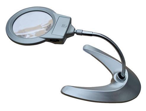 | End of Line - Limited StocksFlexible arm allows the lens to be set at a preferred angle to suit personal needs. Ideal to be used for reading, hobbies and craft work. Two bright white LEDs for added illumination. Broad base for stability. |