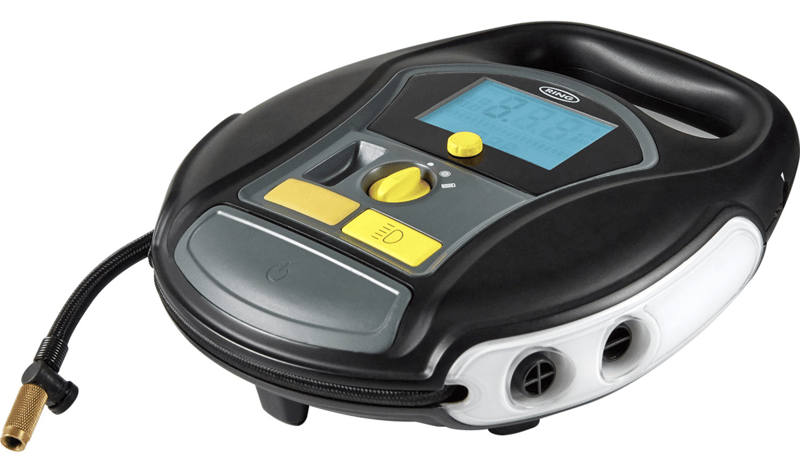 Cordless tyre inflator, ideal for camping and road trips. The RTC6000 digital tyre inflator can inflate a tyre in just two minutes. Comes with air compressor setting for tyres, and air pump setting for air beds. Can inflate a single airbed in just two minutes.
