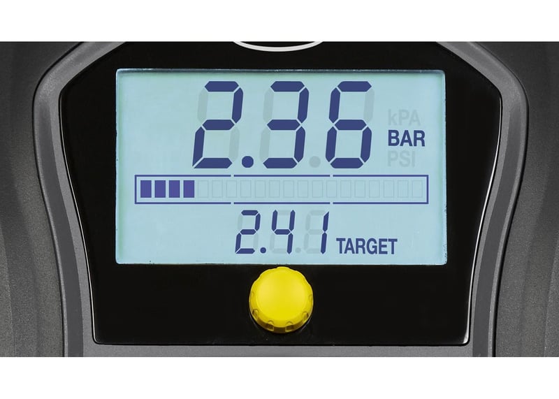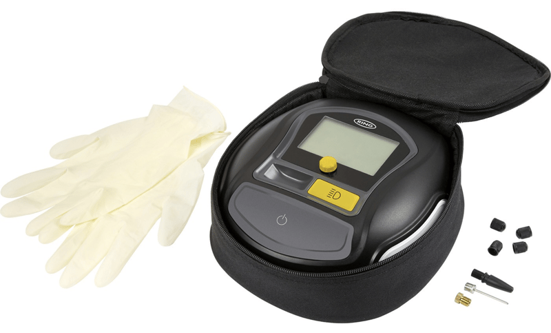 The RTC1000 Rapid Digital Tyre Inflator makes tyre maintenance fast and easy. The RTC1000 inflates a 13" tyre in just 2 minutes. It comes with three adaptors, LED light storage case, spare valve caps and latex gloves. Easy to use where you need it, the RTC1000 Rapid Digital Tyre Inflator is powered directly from your in-car 12V socket. Clearly see readings thanks to the large backlit digital screen. Auto stop ensures accurate inflation. The RTC1000 Rapid Digital Tyre Inflator is simple to set: just turn the dial to the pressure you require, click to set, then press start. The inflator will automatically stop once the correct pressure has been reached. 3.5m long cable allows you to reach tyres all around the vehicle. Simply wind up to store tidily in the back on the tyre inflator. The 70cm air hose can be stored in the inflator. The inflator is easy to use, thanks to the flat design, large on/off button and valve cap storage. The deflation valve allows you to make small reductions in pressure.