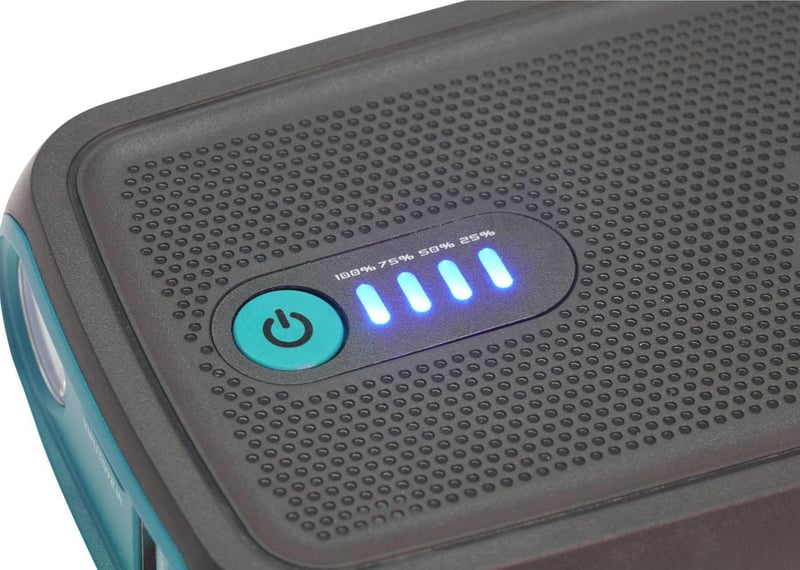 A powerful, safe and compact Lithium Cobalt LiCoO2 jump starter, ideal for small to medium cars and vans. Able to start 12V vehicles up to 3L. Also provides power to recharge electronic gadgets. The compact design fits easily into your glove box, without compromising on power. The safe connect system protects the user, vehicle and jump starter when in use. The intelligent clamps safely manage power between the jump starter and vehicle, plus the device features reverse polarity, short circuit and anti-spike protection. The powerbank function charges electronic appliances including smart phones and tablets. Recharges in just 3 hours, with micro USB charging cable included. Also features integrated LED torch, to make jump starting easier.
