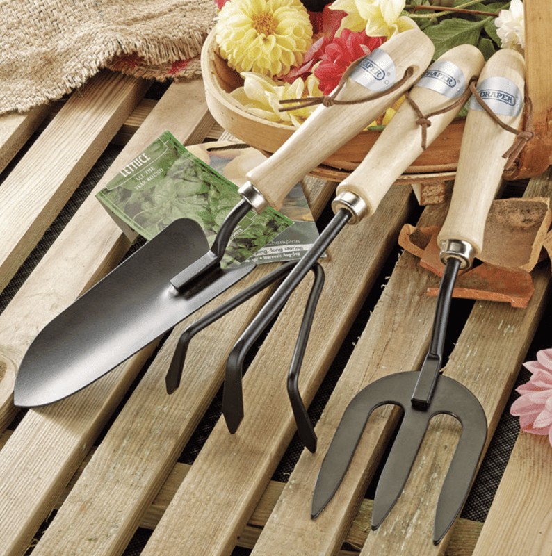 Draper - Carbon Steel Hand Fork Cultivator and Trowel - With Hardwood Handles - 3 Piece - [DO-83993]