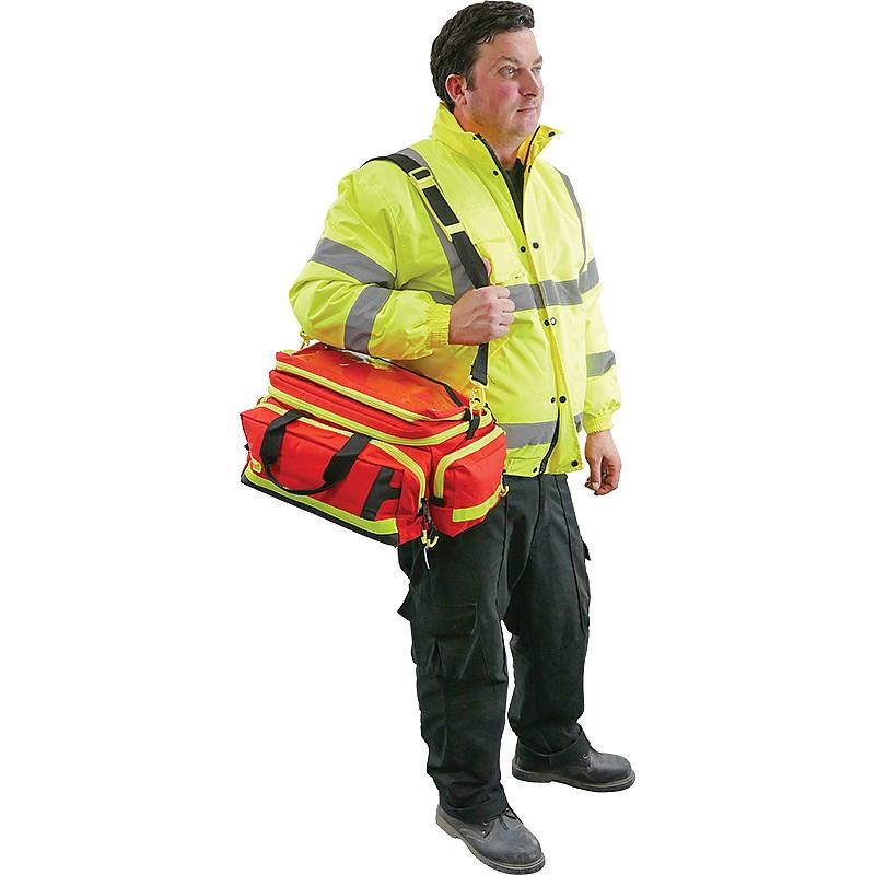 This emergency medical bag is perfect for professional first aiders. Robust, durable, highly visible and simple to handle, this bag features a large padded main compartment with a moveable and removable interior divider for easily customizable organization and protection. The lid includes an added internal zip-pocket and an elastic attachment strap with loops for ampoules, syringes and other similar items, with an additional elastic attachment strap inside the front pocket. The bag also incorporates two side pockets and a transparent document pocket on the top. This versatile medical bag has a total of approximately 28L of storage space.
