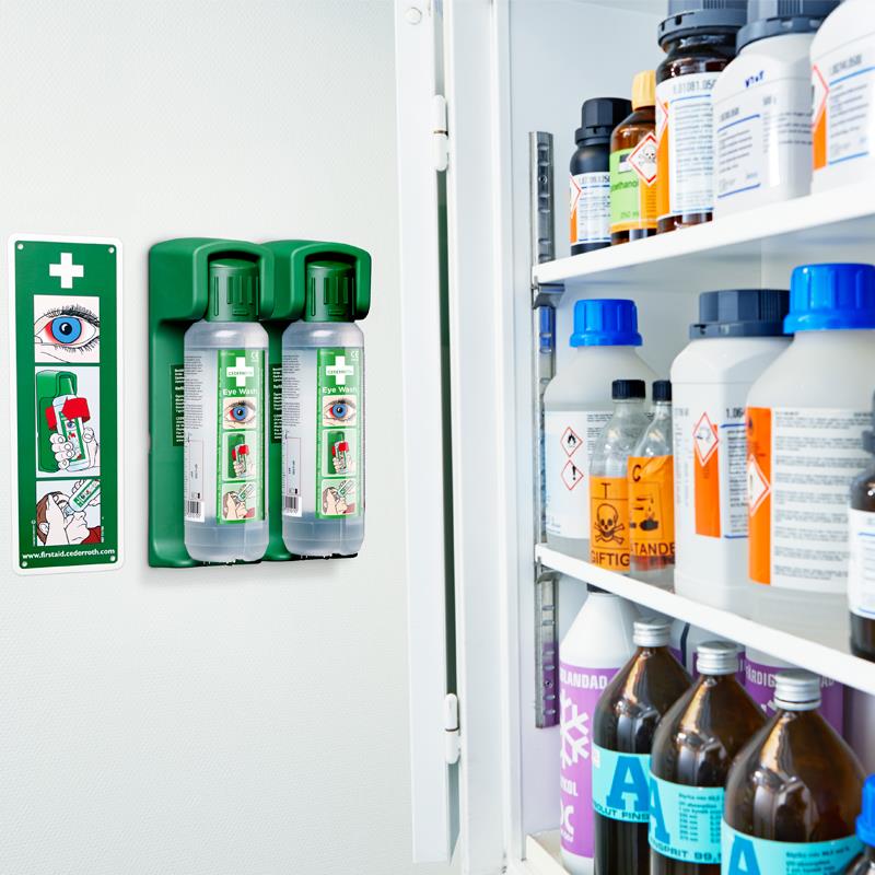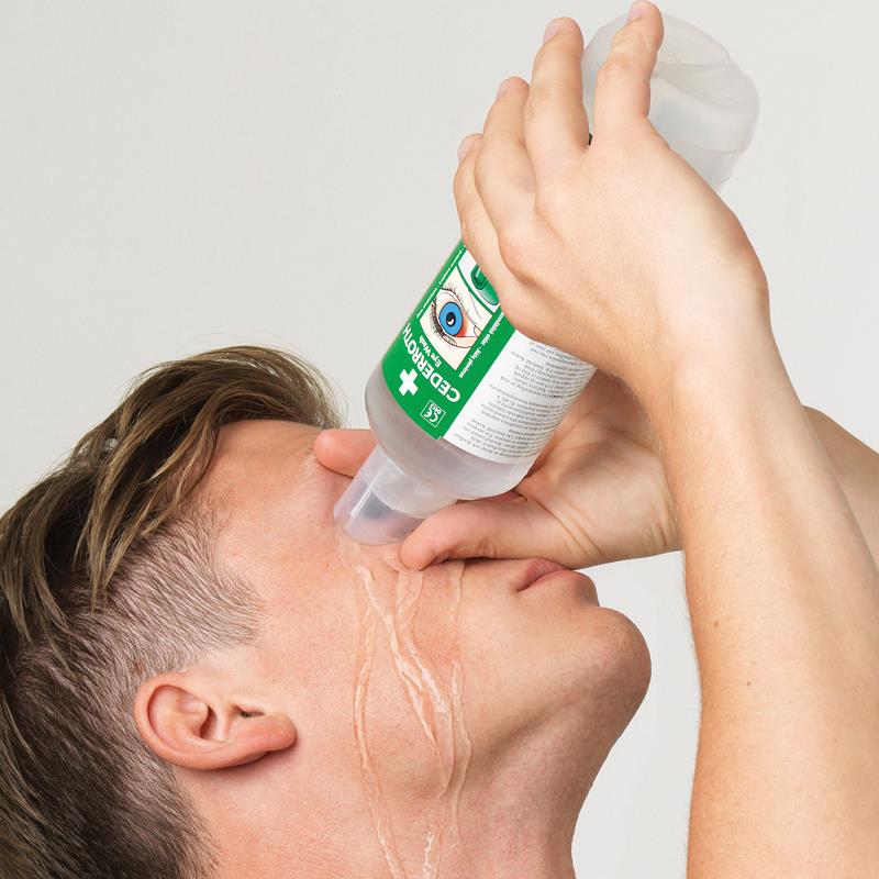 Cederroth Eye Wash (500ml) has a functional design for effective flushing. The Eye Wash bottle is quick and easy to open with only a twist being required to open the bottle. As well as diluting and flushing away the dangerous substance, Cederroth’s buffered Eye Wash also has a neutralizing effect on splashes from alkalis and acids.Cederroth Eye Wash (500ml) provides a higher chance of saving your eyes in case of an emergency.Cederroth Eye Wash (500ml) features an integrated dust cover that keeps the eye cup clean. The dust cover also acts as an opening device. Cederroth Eye Wash can be positioned in several different ways, making it suitable for all workplaces.Description: