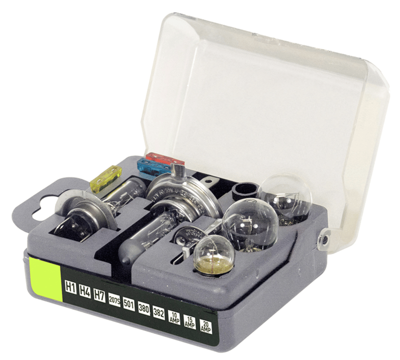 The Emergency Bulb Kit includes all the major functional bulbs required for most vehicles. This kit helps you stay safe, legal and prepared. An essential for EU travel.