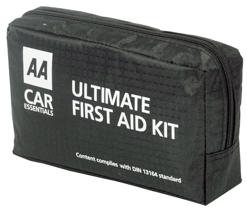 The AA Ultimate First Aid Kit is ideal for your car, home or for taking away on a trip or on holiday. It contains all the items needed to cleanse, dress and bandage an injury; and includes safety gloves and a first aid guidance leaflet. This handy first aid kit comes in a soft zip-up pouch for easy storage at home or in the car. The kit conforms to DIN 13164.The kit includes: