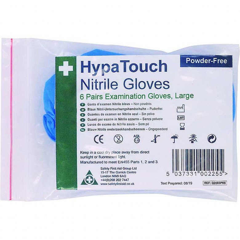 HypaTouch Powderfree Blue Nitrile Gloves - Size Large - Pack of 6 Pairs - [SA-Q2683PR6]