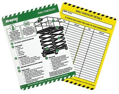 Scafftag MEWP Tag Standard Daily Checklist Insert for Mobile Elevated Work Platforms- Single - [SC-ETSI-550]