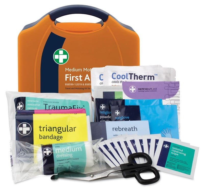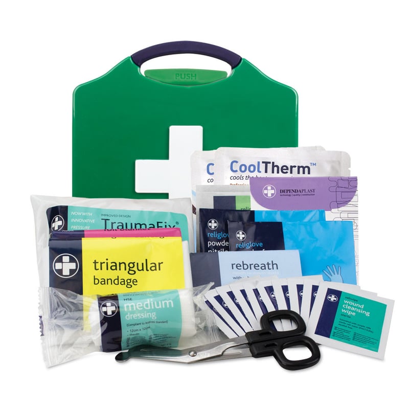 Medium First Aid Kit suitable for up to 8 passengers. The size of the first aid kits required for motor vehicles is determined by the size of the vehicle, category of hazard, and passenger numbers.