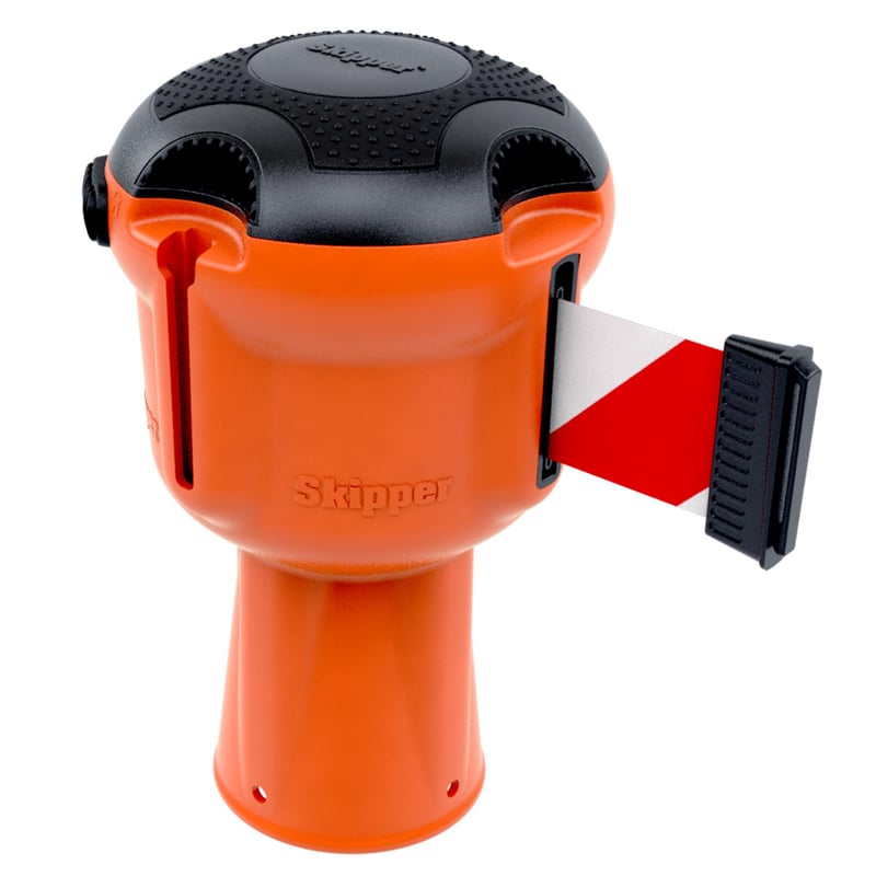 Skipper Main Unit - Orange with Red White Tape - Retractable Barrier Tape Holder - with 9m Tape - [SK-001-RW] - (LP)