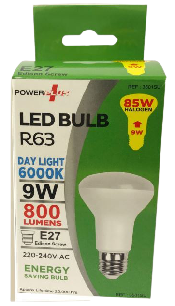 Power Plus - 9W - E27 Energy Saving R63 LED Bulb - 800 Lumens - 6000k Day Light - Pack of 12 - [PU-3501]