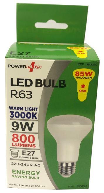 Power Plus - 9W - E27 Energy Saving R63 LED Bulb - 800 Lumens - 3000k Warm White - Pack of 12 - [PU-3500]