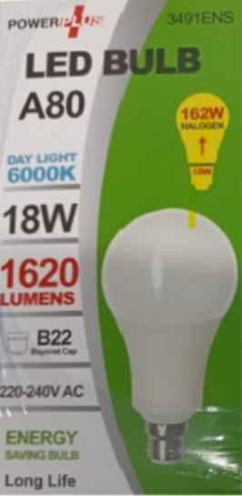 Power Plus - 18W - B22 Energy Saving A80 LED Bulb - 1620 Lumens - 6000k Day Light - Pack of 12 - [PU-3491]