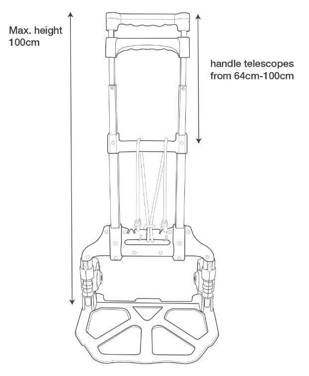 Max height 100cm, handle telescopes from 64cm-100cm