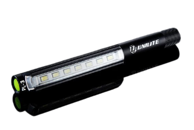 The PL-3 is a bright 500 lumen aluminium LED inspection light constructed of durable die-cast aluminium. A strong magnetic base allows hands-free placement and its anti-roll body keeps it stable when used on its side. It has a useful aluminium rear pocket clip attachment for added portability.